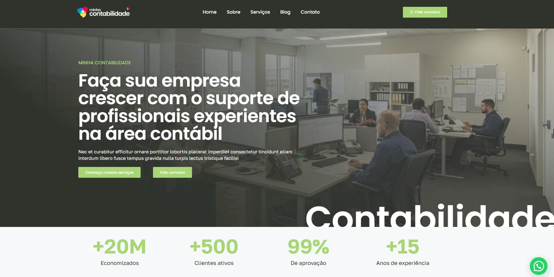 Design sob medida: Layout responsivo, moderno e intuitivo, pensado para o setor contábil.