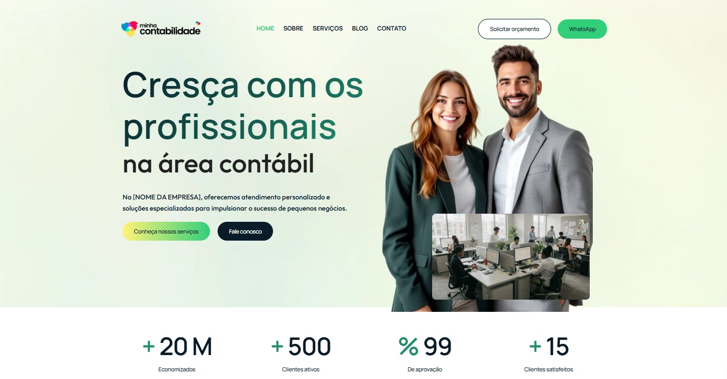 Design sob medida: Layout responsivo, moderno e intuitivo, pensado para o setor contábil.
